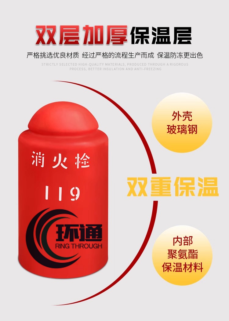 玻璃鋼消防栓保溫罩 污水池密封罩 廢氣臭氣集氣罩 廠家玻璃鋼拱形保溫罩 密封防腐 消火栓保溫罩 玻璃鋼室外地上栓防護罩 消防栓保溫桶 室外消防栓保溫罩 消火栓防凍裂水泵接合器護罩 聚氨酯玻璃鋼保溫罩 山東環通復合材料有限公司 www.kobag.cn