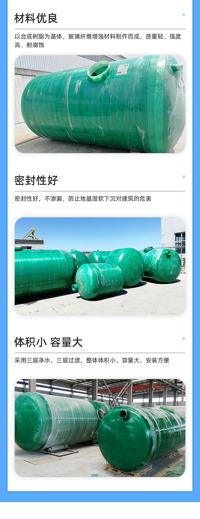 山東環通復合材料有限公司成立于2011年,是從事玻璃鋼化糞池產品的企業,公司位于山東濰坊安丘市。玻璃鋼化糞池有1立方、2立方3立方、4立方、5立方、10立方、12立方、15立方、20立方、25立方、30立方、50立方等,顏色分為:綠色、藍色、黃色等。公司產品主要分為:玻璃鋼儲罐容器,玻璃鋼化糞池,玻璃鋼隔油池,玻璃鋼加砂管道,玻璃鋼化糞池,玻璃鋼脫硫塔,玻璃鋼格柵,玻璃鋼防腐,玻璃鋼儲罐,玻璃鋼管件等。